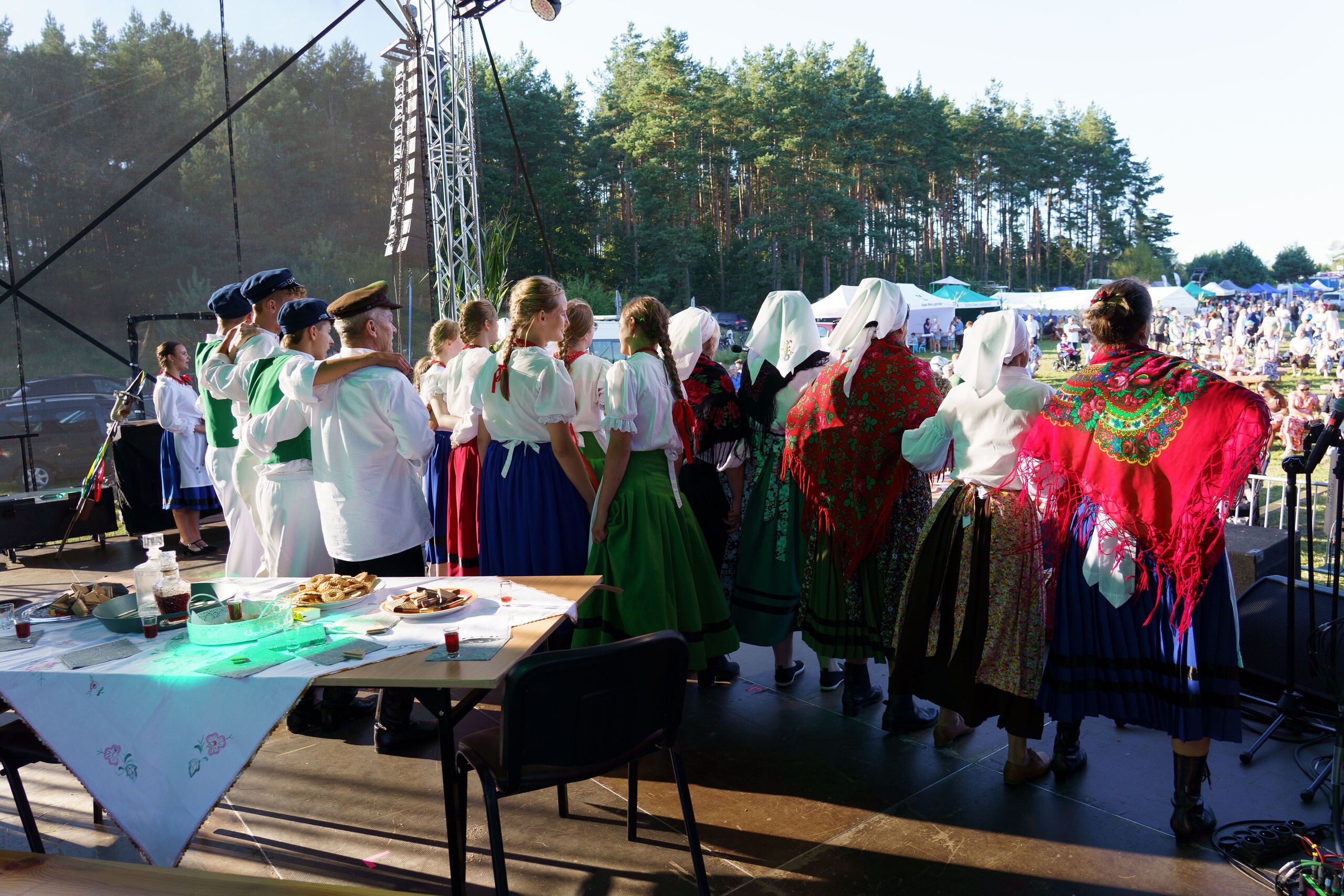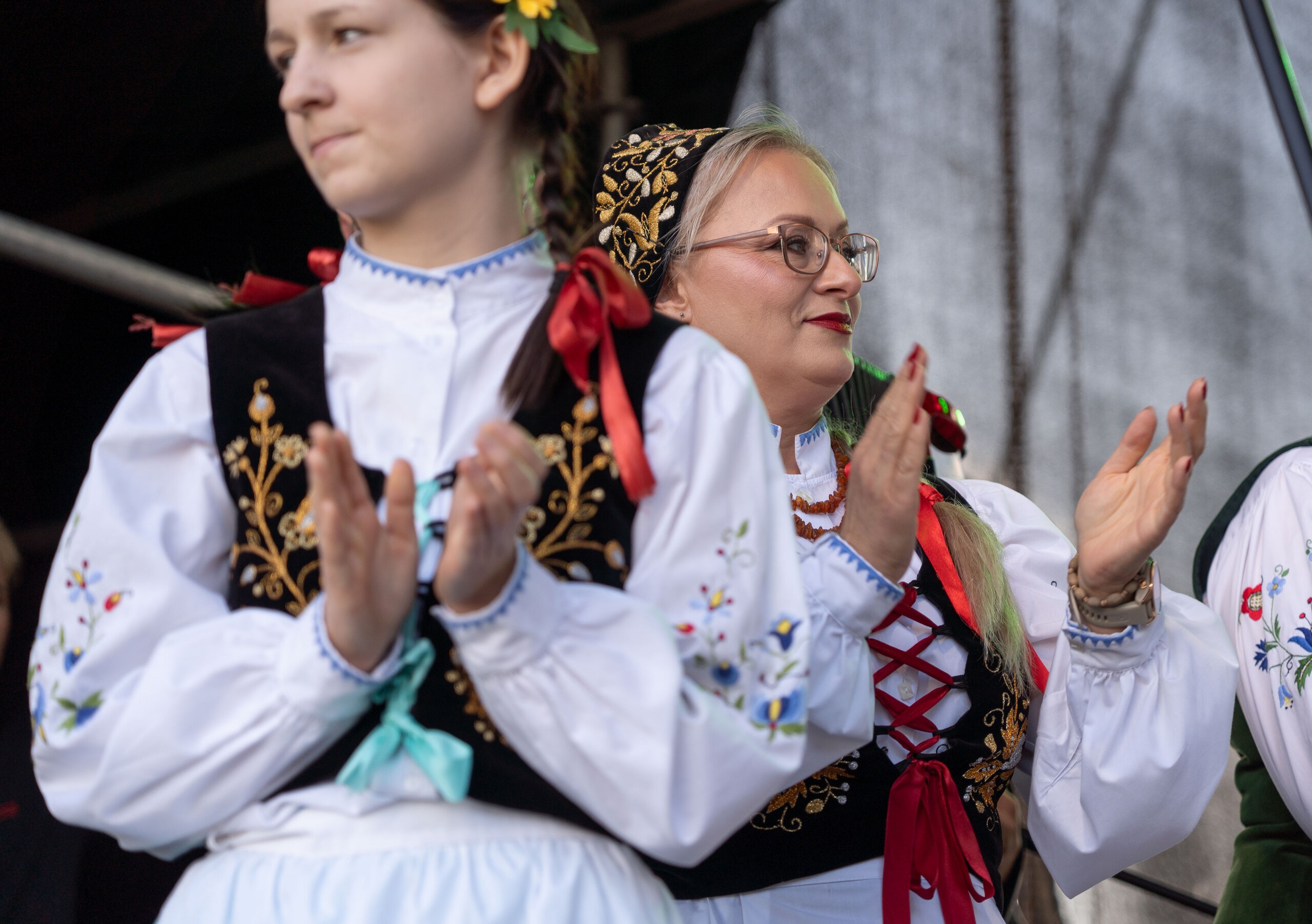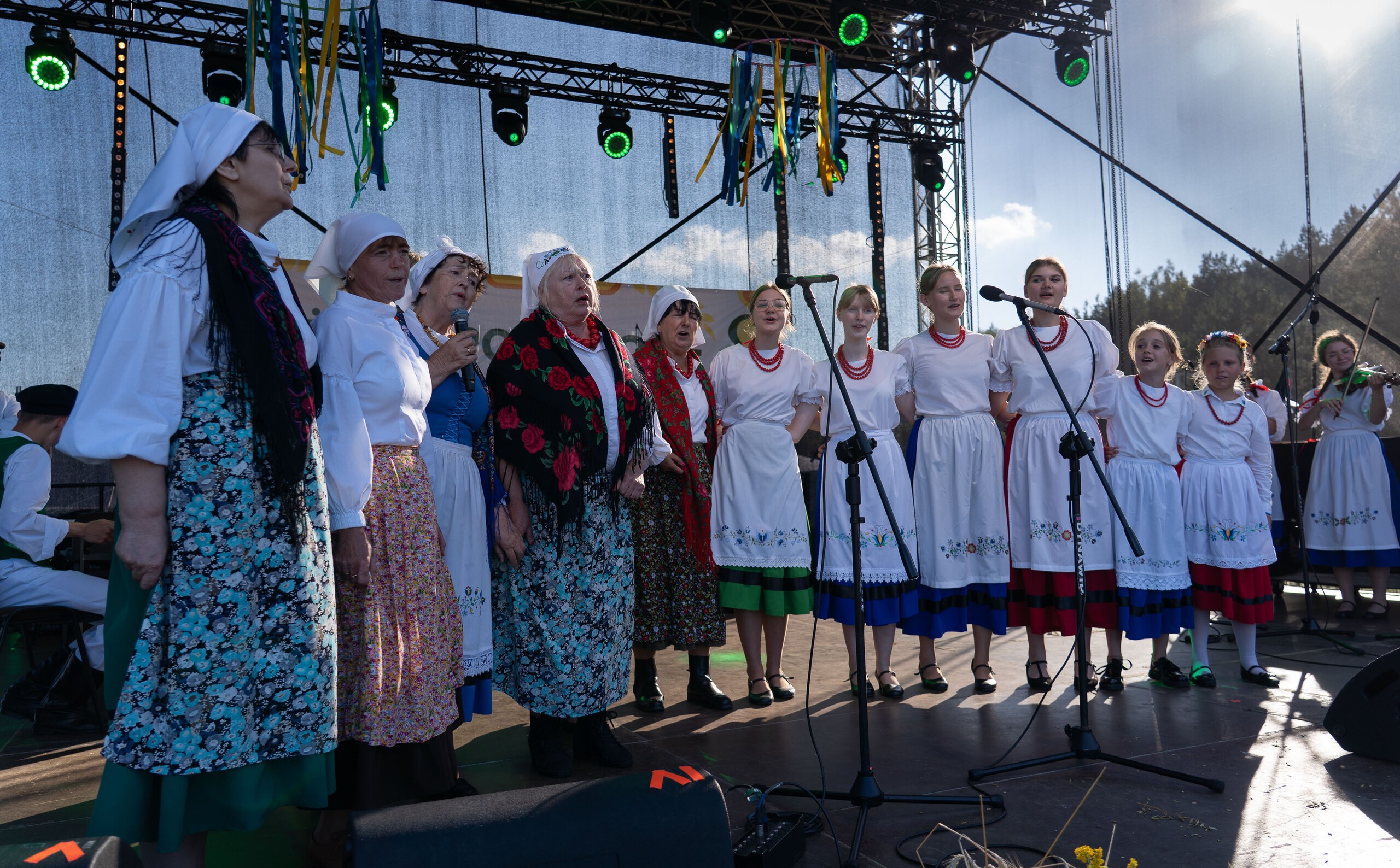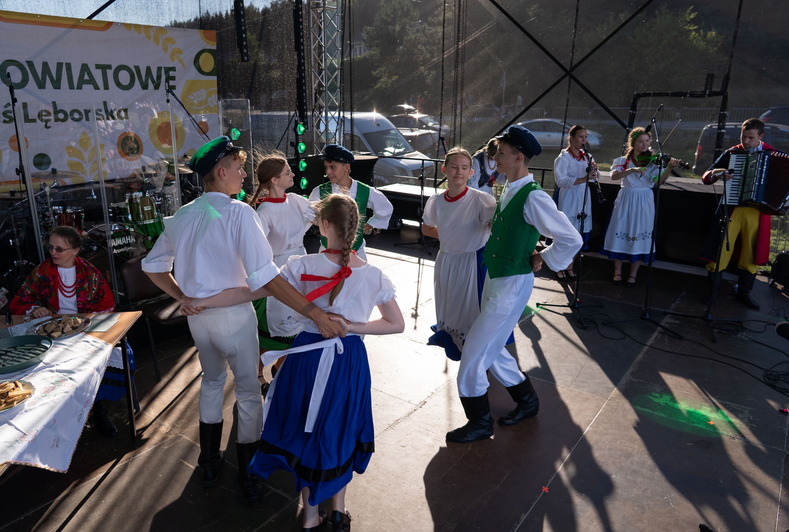 Na głównych ścieżkach dożynkowych nie zabrakło także kaszubskiego folkloru. Kaszubski Zespół Pieśni i Tańca Levino oraz Zespół Regionalny Frantówka roztańczyli publiczność, prezentując „Ożniwiny” – widowisko obrzędowe, które pozwoliło zanurzyć się w bogactwie pieśni, tańców i zwyczajów Kaszub. Takie chwile przypominają, że tradycja i lokalna kultura są wciąż żywe i obecne w codzienności mieszkańców. Potęgę wspólnego śpiewu, wyjątkowy repertuar i artystyczny kunszt zaprezentował Chór Gminy Cewice.