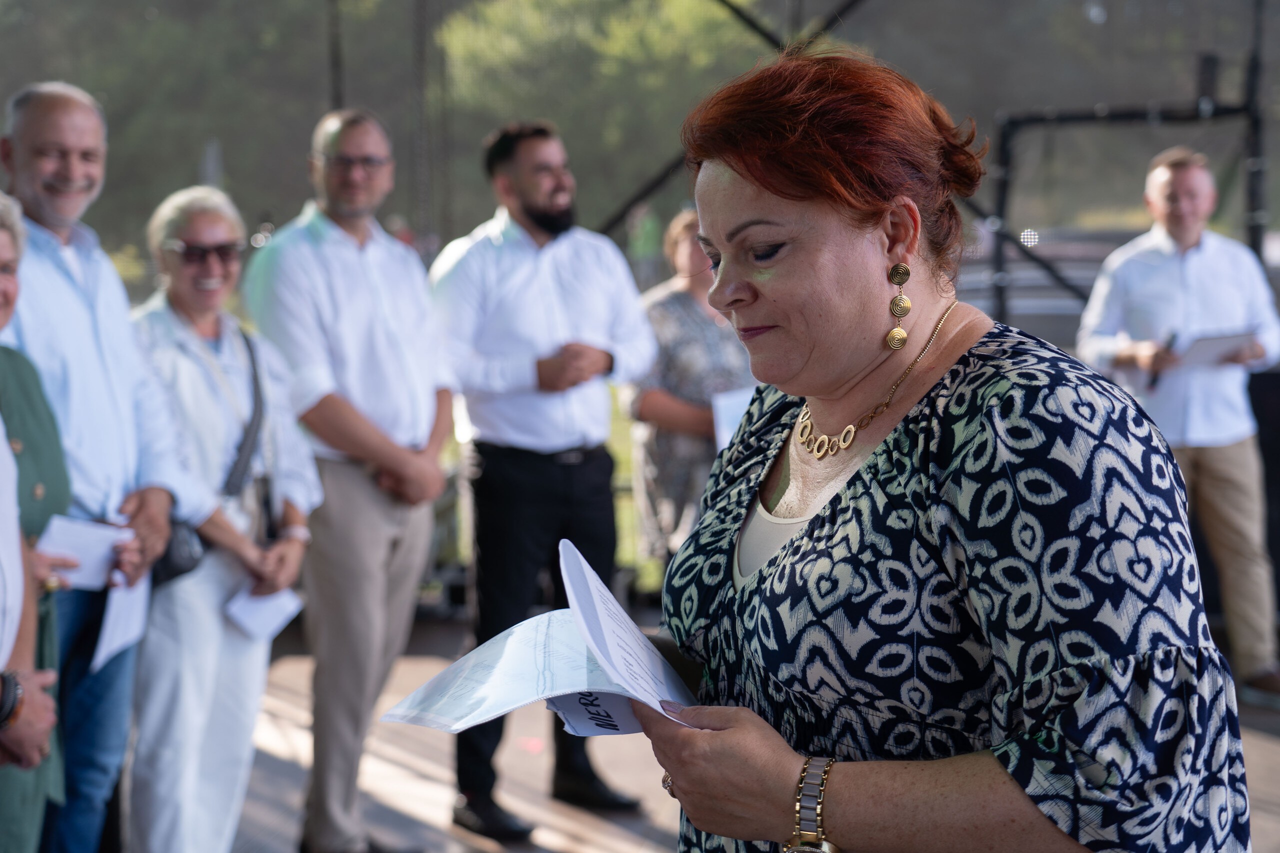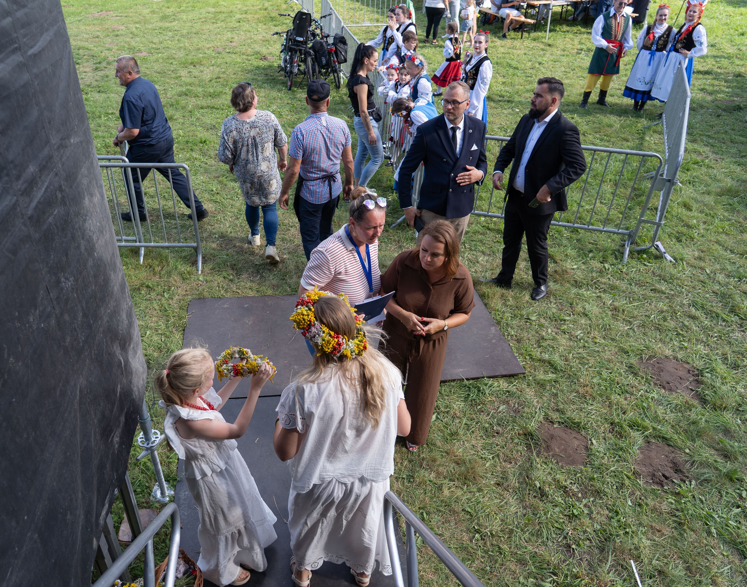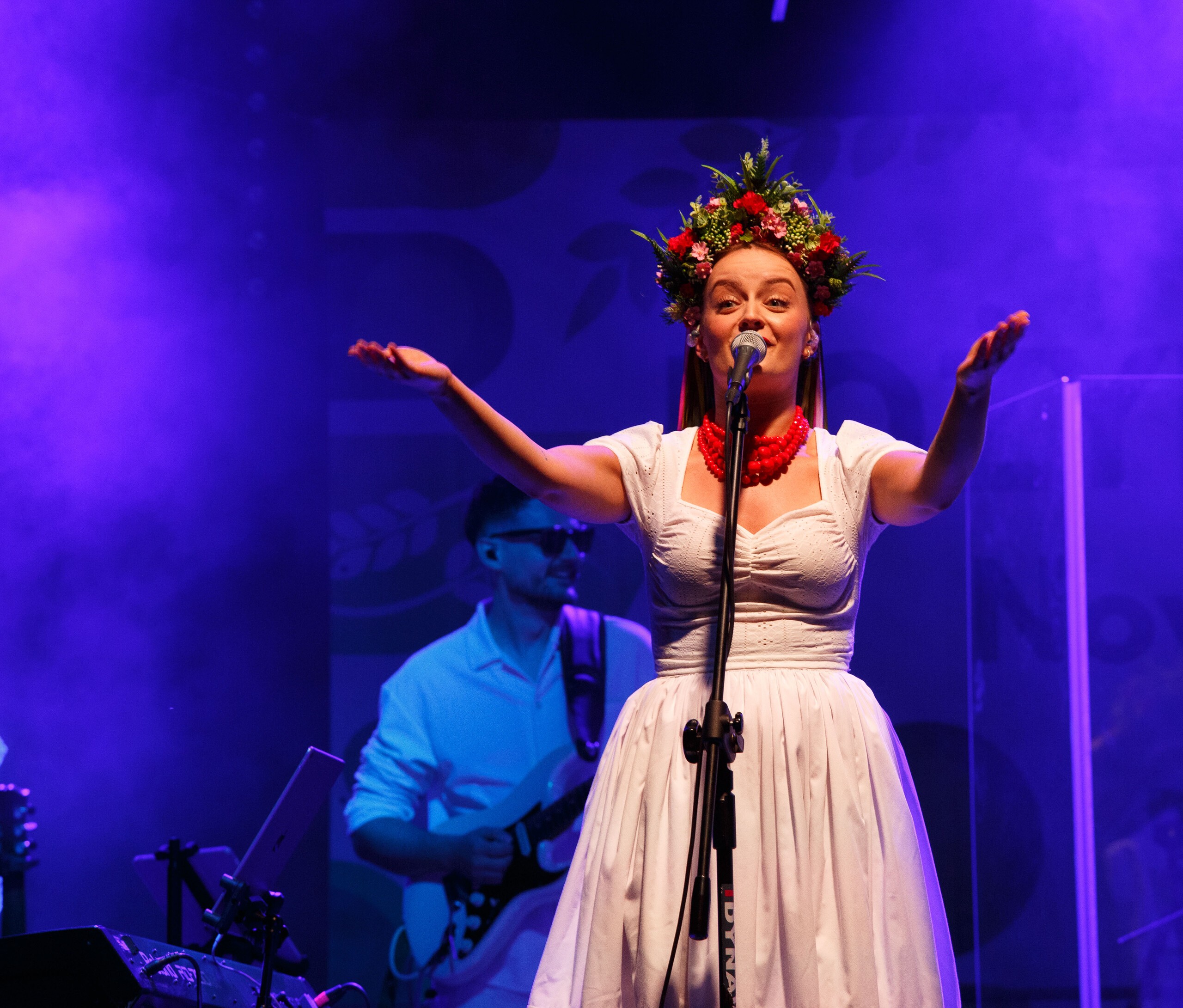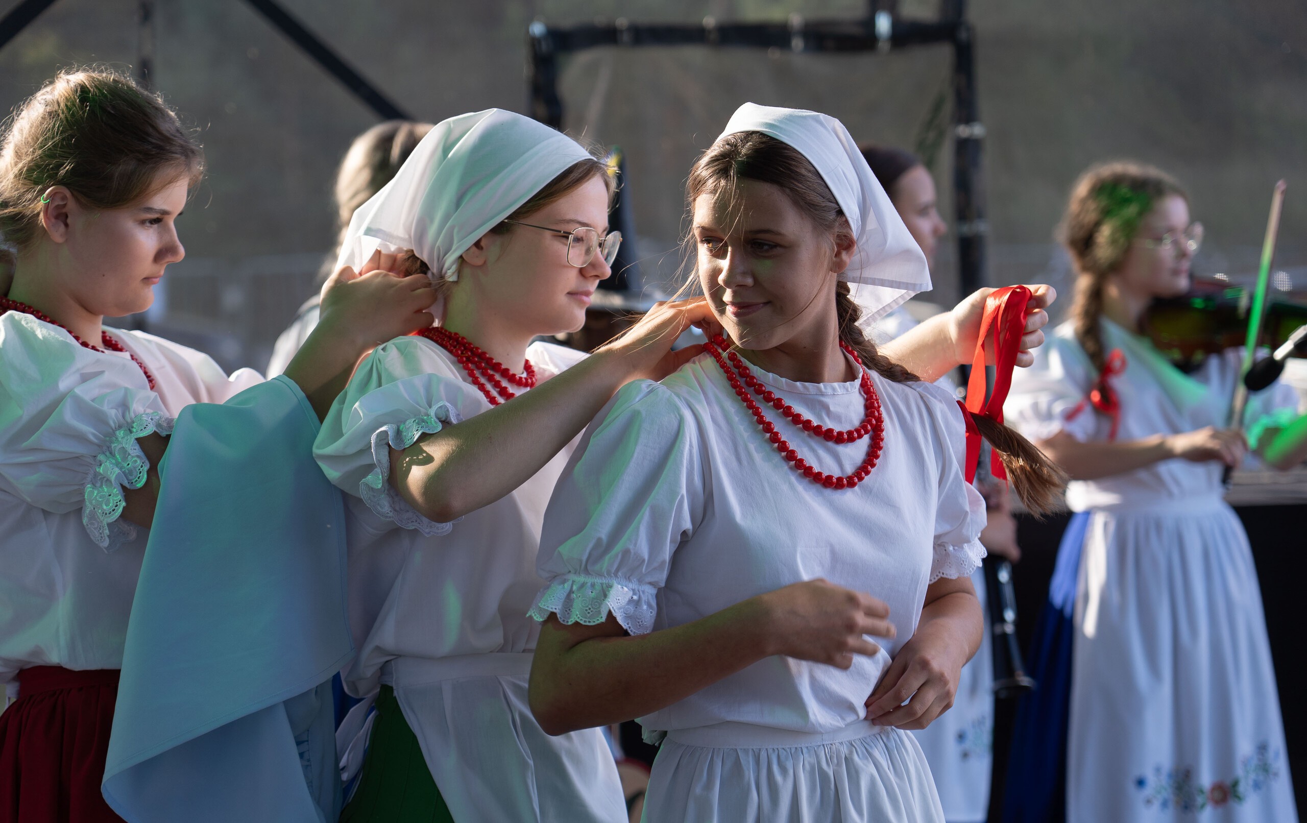 Na głównych ścieżkach dożynkowych nie zabrakło także kaszubskiego folkloru. Kaszubski Zespół Pieśni i Tańca Levino oraz Zespół Regionalny Frantówka roztańczyli publiczność, prezentując „Ożniwiny” – widowisko obrzędowe, które pozwoliło zanurzyć się w bogactwie pieśni, tańców i zwyczajów Kaszub. Takie chwile przypominają, że tradycja i lokalna kultura są wciąż żywe i obecne w codzienności mieszkańców. Potęgę wspólnego śpiewu, wyjątkowy repertuar i artystyczny kunszt zaprezentował Chór Gminy Cewice.