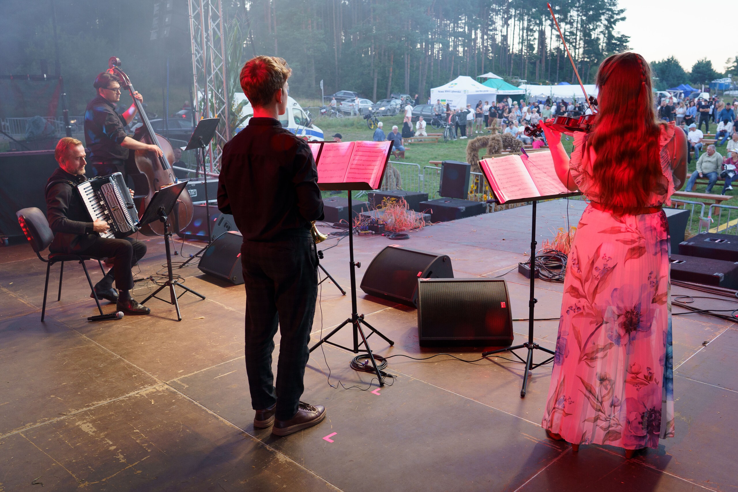 Wieczór dożynkowy upłynął w rytmie francuskiej muzyki dzięki kwartetowi Viva Musica Andrzeja Formeli, który wprowadził słuchaczy w klimat paryskich melodii. Tuż po nim, na scenie jako gwiazda wieczoru wystąpiła Tulia – koncert zespołu pełen energii, tradycyjnych brzmień w nowoczesnym wydaniu, został przyjęty przez publiczność z wielkim entuzjazmem i wzruszeniem.