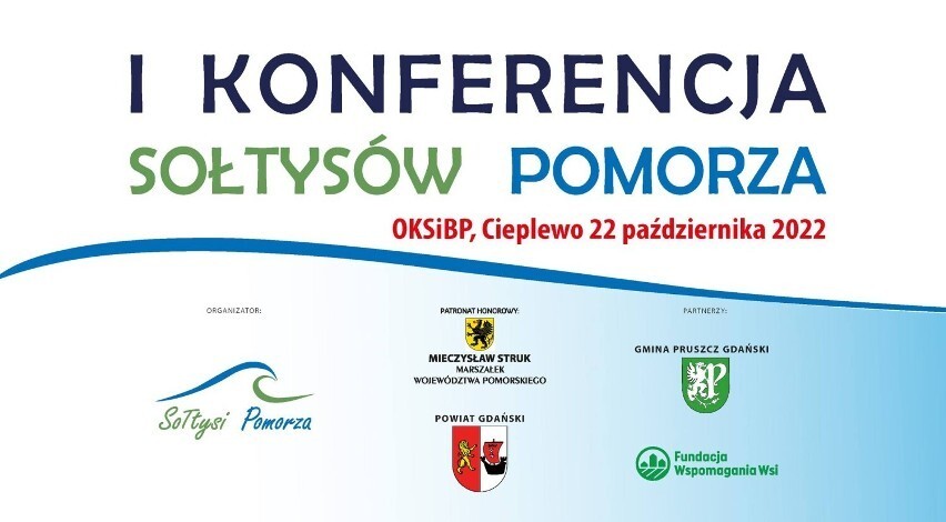 Stowarzyszenie Sołtysów Pomorza ma zaszczyt zaprosić sołtysów, sołtyski i członków rad sołeckich do udziału w I Konferencji Sołtysów Pomorza, która odbędzie się 22.10.2022 r. w Ośrodku Kultury, Sztuki i Biblioteki Publicznej Gminy Pruszcz Gdański w Cieplewie.