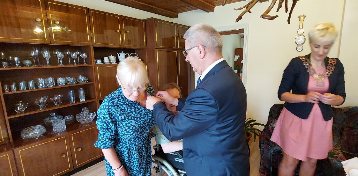 W dniu 8 lipca br. Wójt Gminy Zdzisław Chojnacki oraz Kierownik Urzędu Stanu Cywilnego Joanna Klein złożyli wizytę Państwu Bogusławie i Leszkowi Wołosiuk z Redkowic, którzy obchodzili rocznicę 50-lecia pożycia małżeńskiego. Z tej okazji wójt, w imieniu Prezydenta RP wręczył Jubilatom „Medale Róży” za Długoletnie Pożycie Małżeńskie. W spotkaniu Jubilatom towarzyszyły córka Dorotka i wnuczka Adriana.