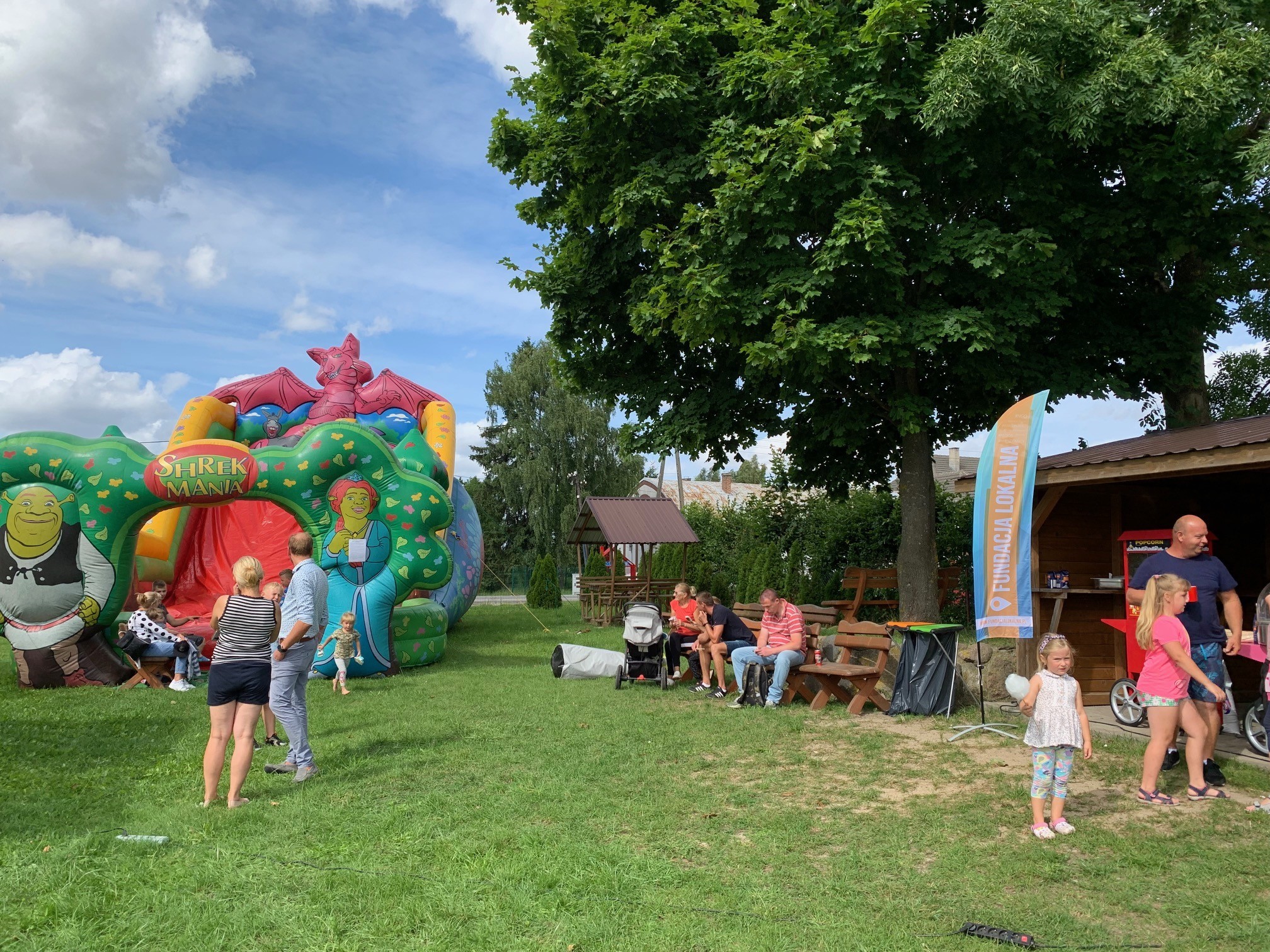Dzieci zapraszamy do zabawy na dmuchanych zjeżdżalniach oraz na darmową watę cukrową i popcorn.