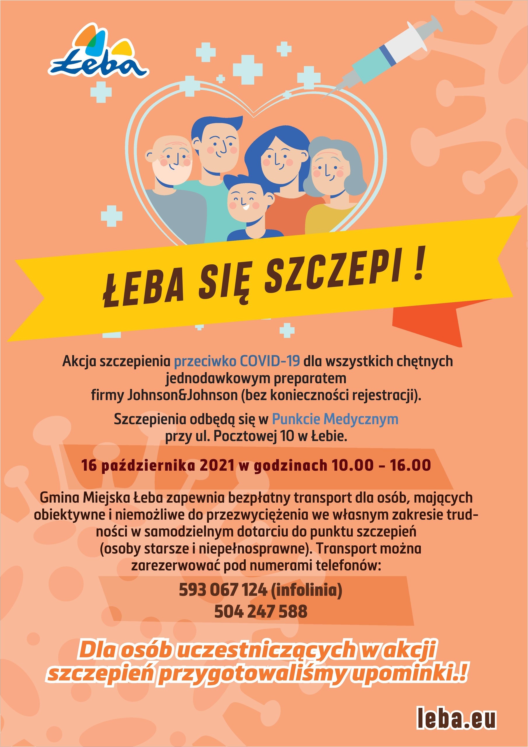 Szczepienia odbędą się w Punkcie Medycznym przy ul. Pocztowej 10 w Łebie.