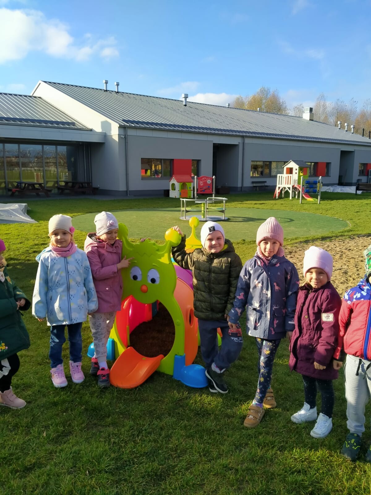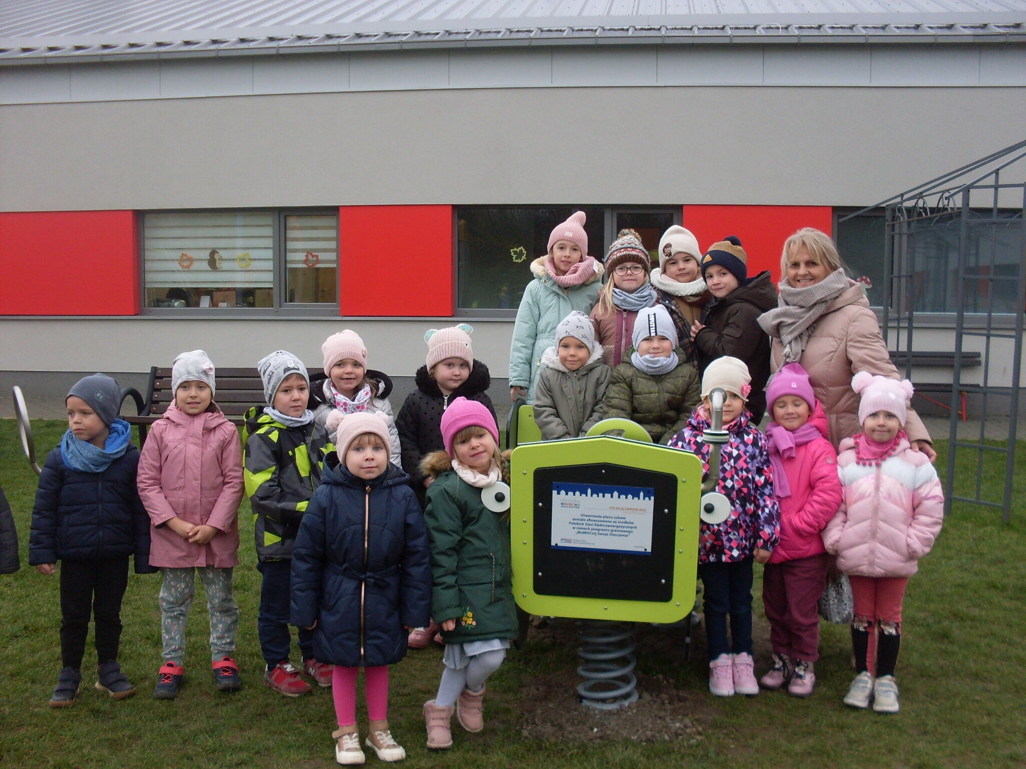 Dzieci z Przedszkola w Nowej Wsi Lęborskiej mają już doposażony swój plac zabaw. Z otrzymanego grantu została zakupiona zjeżdżalnia na wzniesienie, sprężynowy pojazd typu Traktorek oraz domki zabawowe i gąsienica - tunel dla dzieci od Polskich Sieci Elektroenergetycznych w ramach programu "WzMOCnij swoje otoczenie".