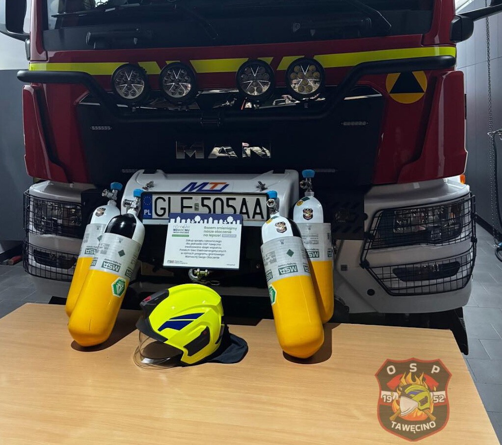 Dzięki grantowi z programu „Wzmocnij Swoje Otoczenie”, realizowanemu przez Polskie Sieci Elektroenergetyczne S.A., druhowie z OSP Tawęcino doposażyli jednostkę w: