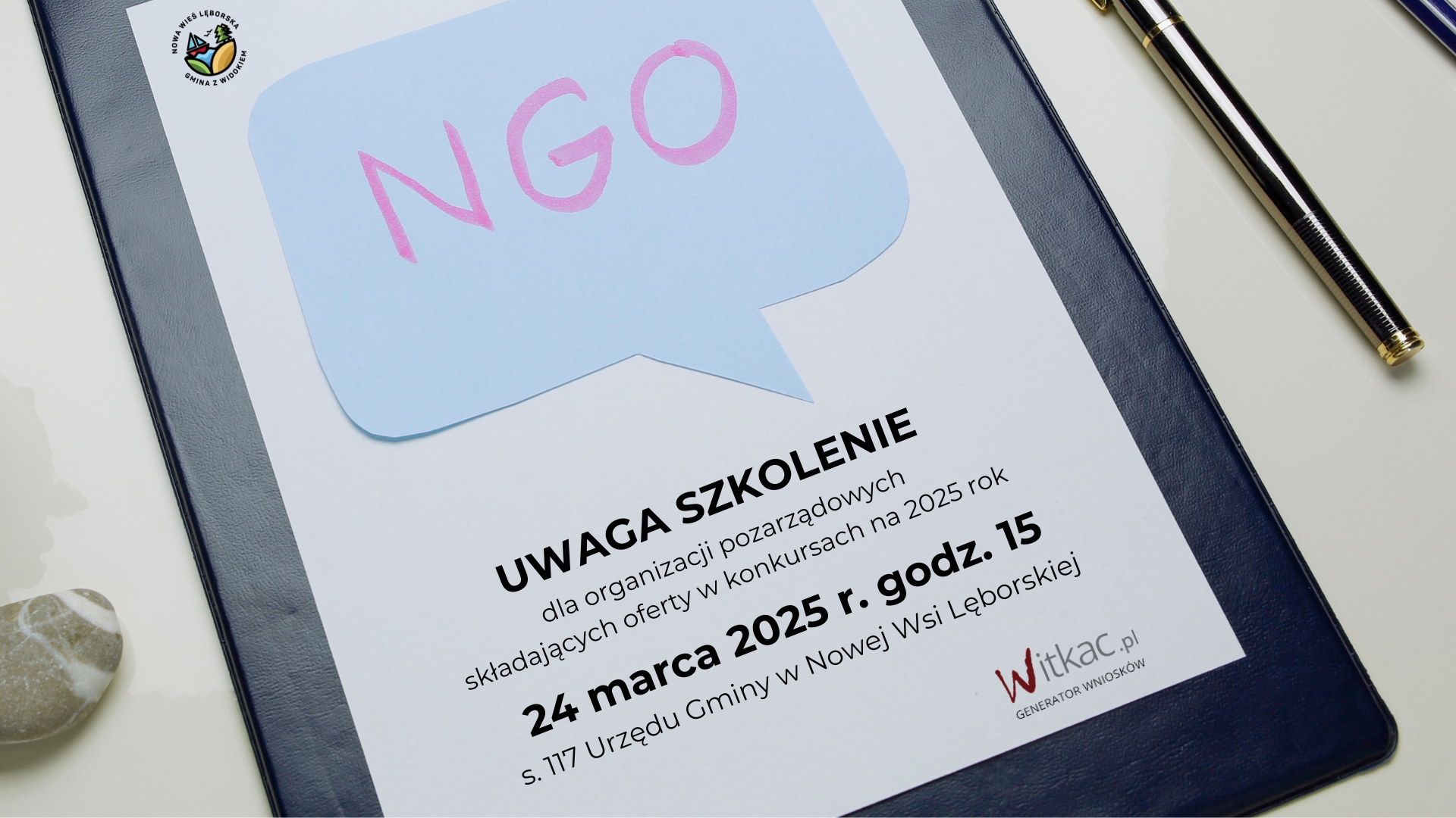 Gmina Nowa Wieś Lęborska zaprasza przedstawicieli organizacji pozarządowych na szkolenie dotyczące składania wniosków o realizację zadań publicznych.
