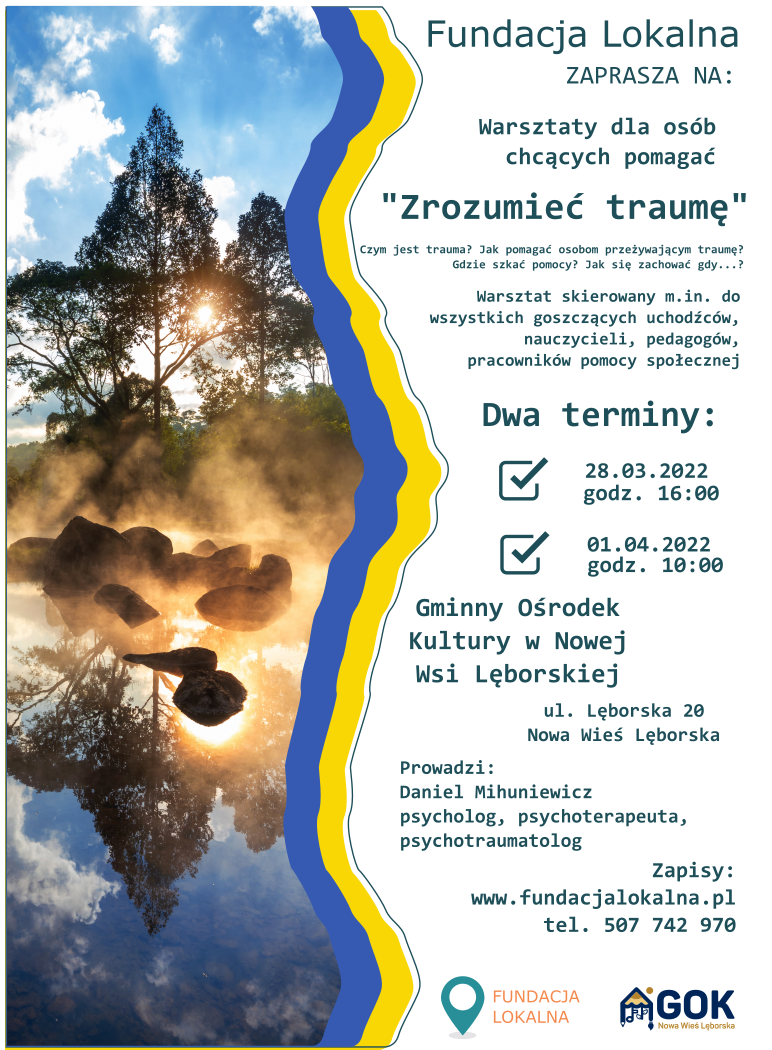 Fundacja Lokalna zaprasza na warsztaty „Zrozumieć traumę" dla osób mających bezpośredni kontakt z uchodźcami.
