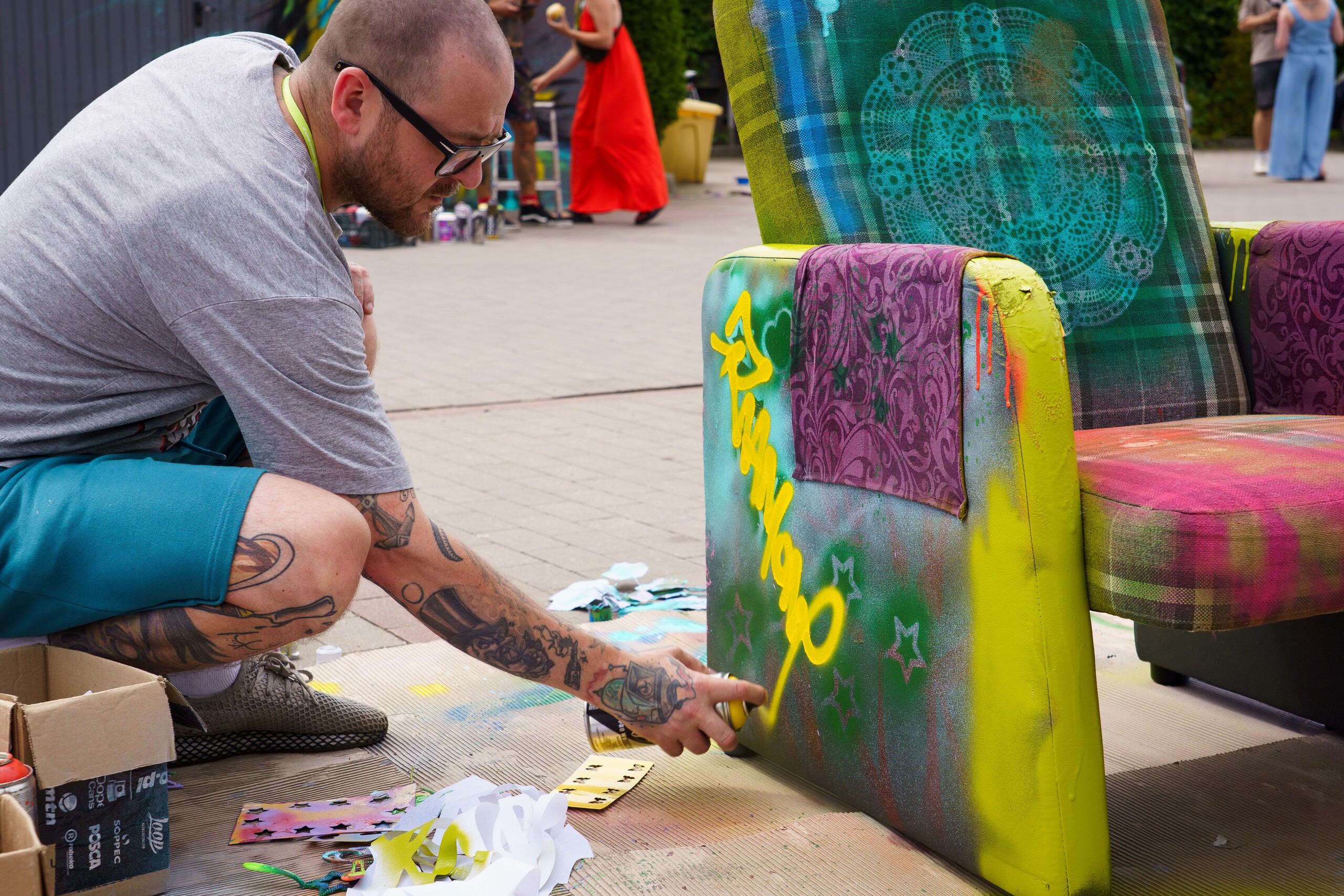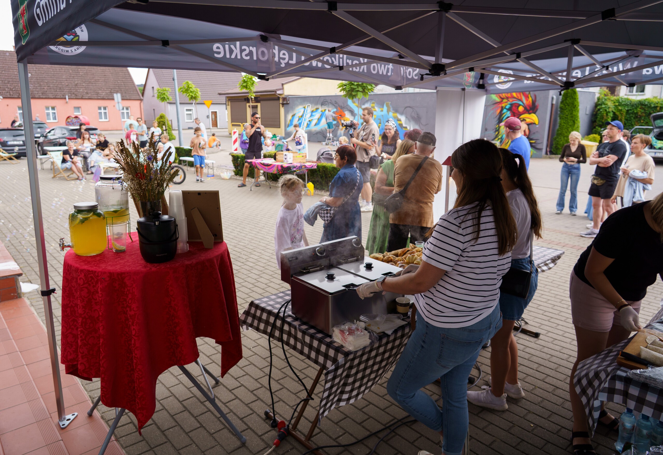 Na wyznaczonych ścianach artyści tworzyli prace z elementami kolorystyki nowego logo Gminy Nowa Wieś Lęborska, każdy na swój unikalny sposób, z zachowaniem pełnej swobody artystycznej. Dla najmłodszych uczestników przygotowano ściankę do samodzielnego malowania oraz pamiątkowe przypinki.