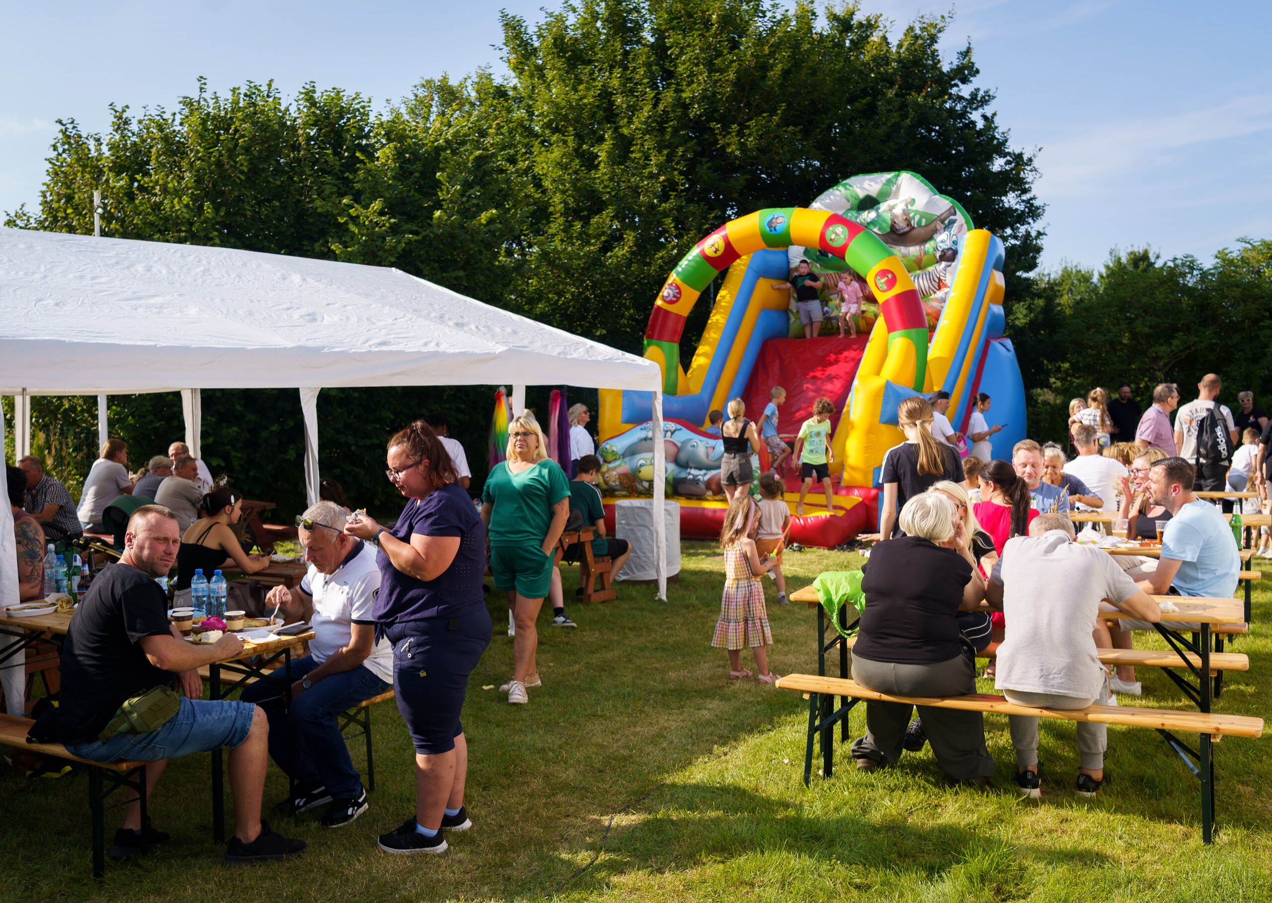 Na uczestników czekały liczne atrakcje. Dużym zainteresowaniem cieszyły się konkursy dla dzieci i dorosłych – w tym siłowanie na rękę oraz wbijanie gwoździa. Stoły uginały się od regionalnych przysmaków: babki ziemniaczanej, pierogów ruskich, placków ziemniaczanych i domowych wypieków. Nie zabrakło także waty cukrowej, popcornu i aromatycznych potraw z grilla.