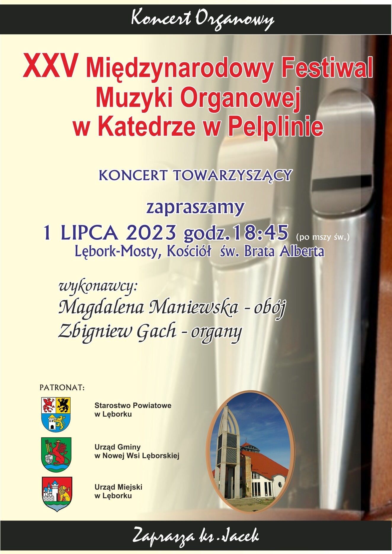 Na koncert towarzyszący do kościoła św. Brata Alberta w Mostach zaprasza ks. Proboszcz 1 lipca 2023 r. o godz. 18:45 (po mszy św.)