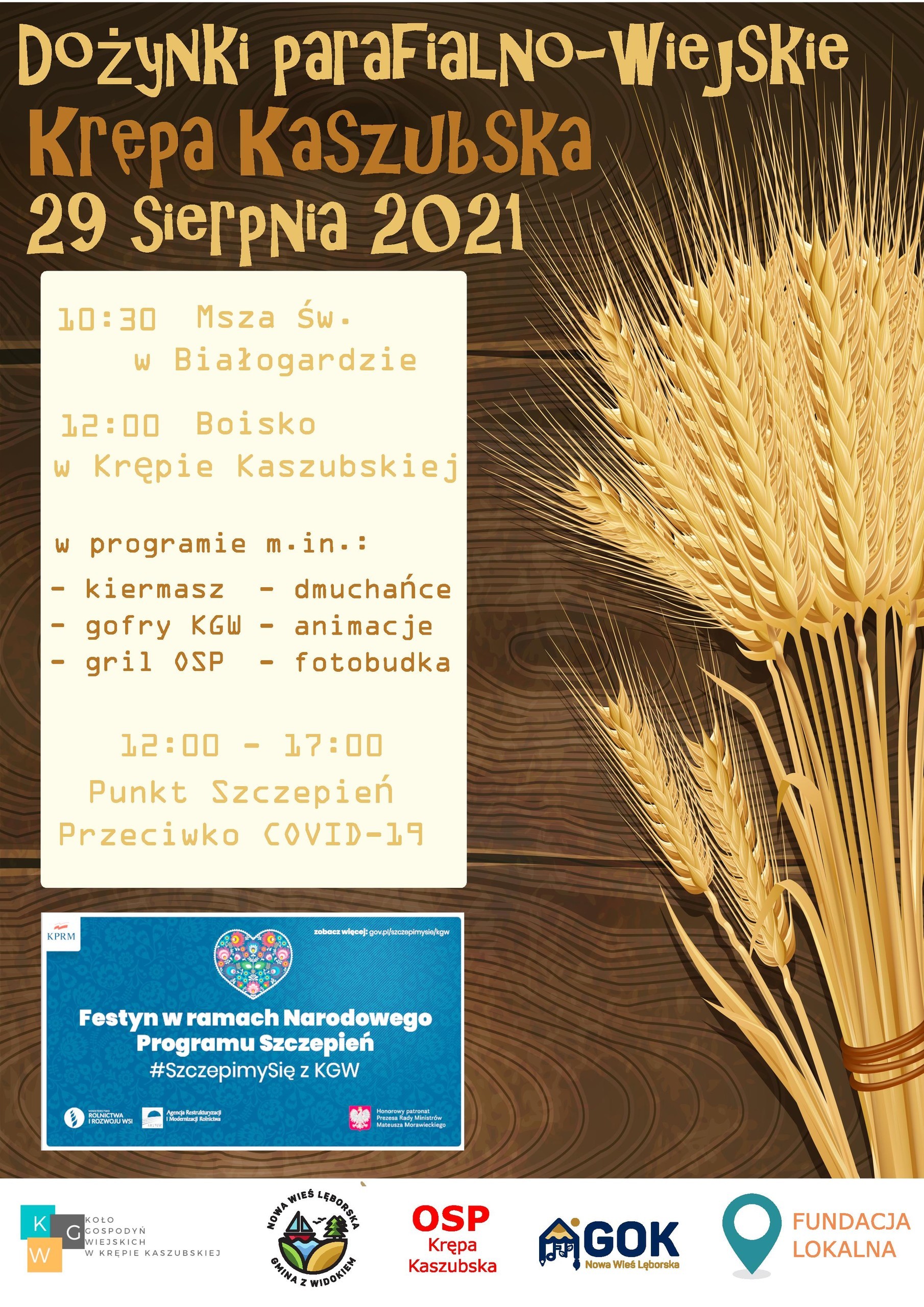 Podczas dożynek będzie możliwość zaszczepienia się przeciw Covid-19 jednodawkowym preparatem Johnson&Johnson. Szczepienia w godz. 12:00 -17:00.